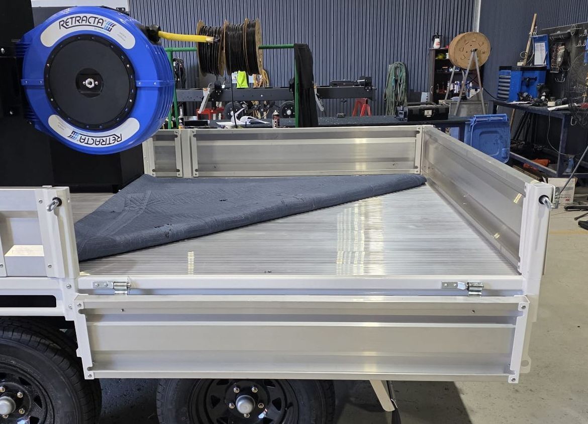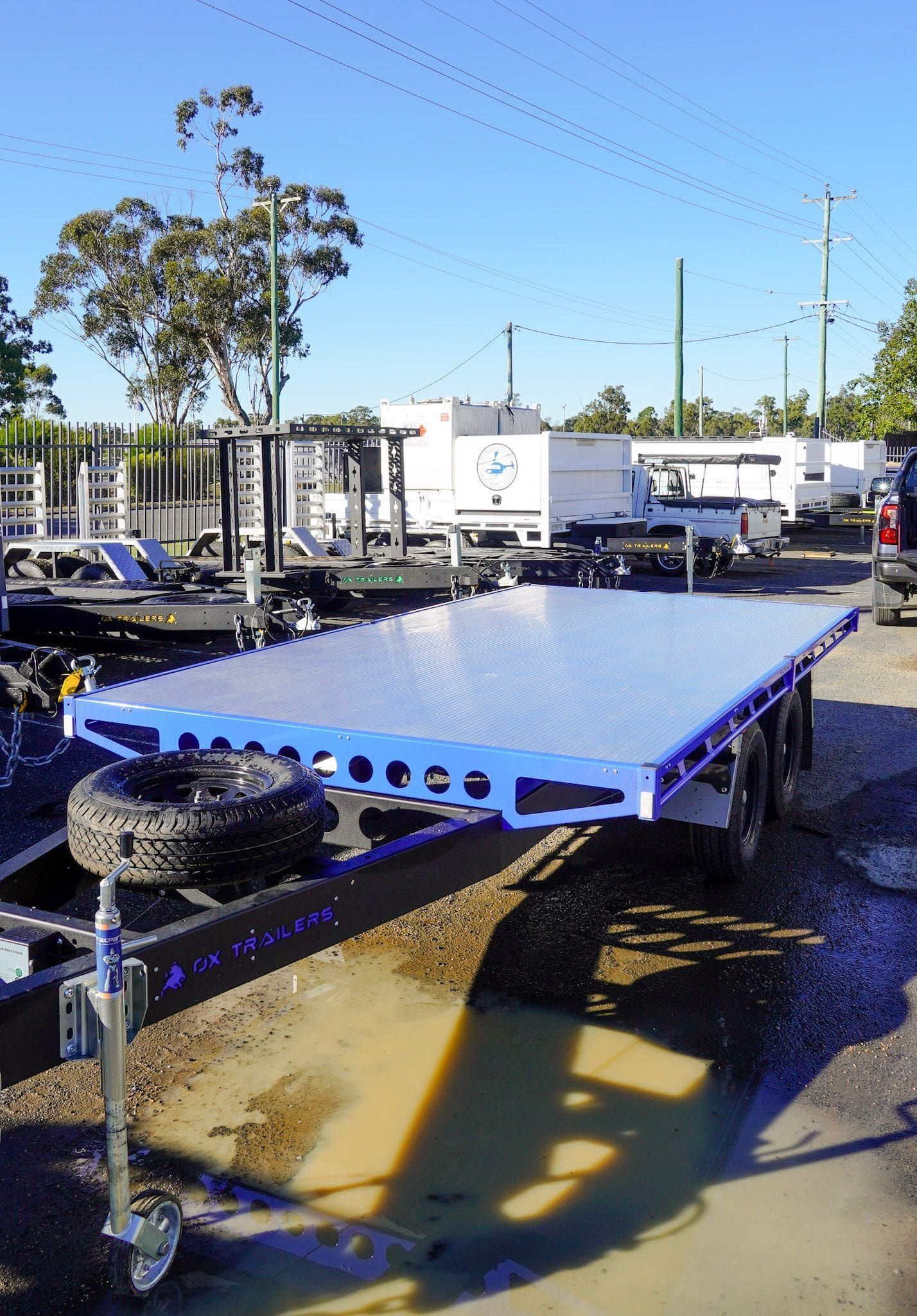 The decking plate of the trade series flat top trailer is built from aluminium extrusion.