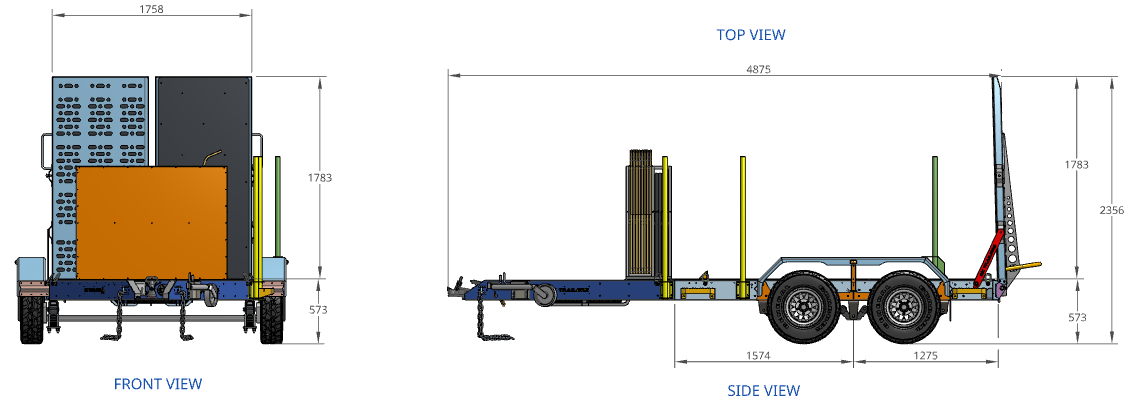 - Mounted to centre rails of Plant Trailer
