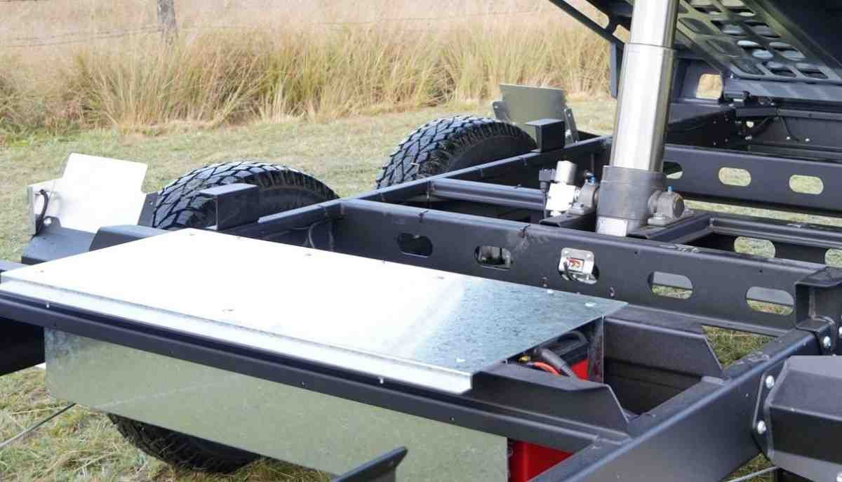 The fabricated chassis is made of laser cut, CNC folded, 350 grade*, open chassis members allowing for easy wash down and cleaning, with no enclosed areas where mud, sand and salt can get trapped and cause corrosion.